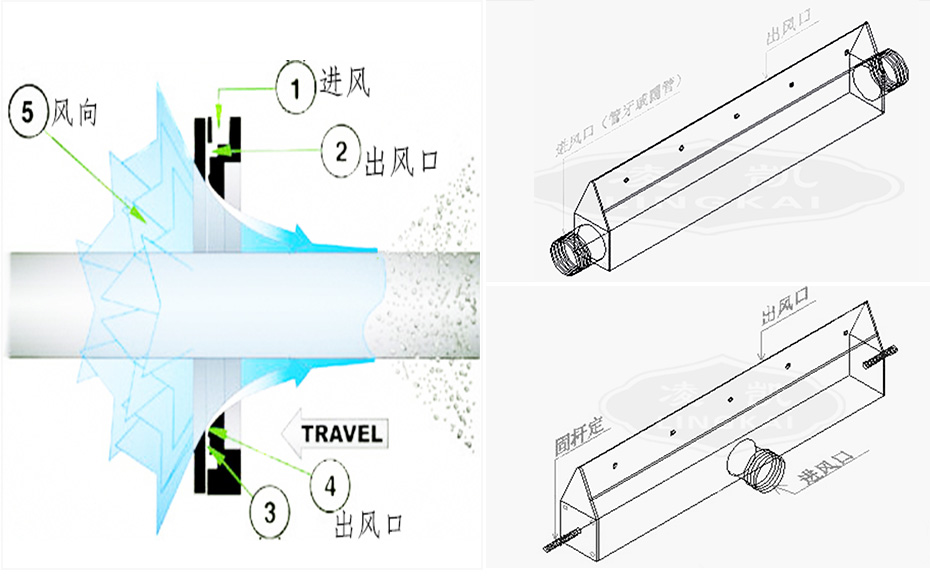 凌凱工業風刀是通過熱風機(風機)驅動設備組合使用,用于精密器件的清洗、快速風干、去除多余水份、快速干燥的應用...... 特別適用于超聲波清洗、玻璃清洗機、電路板、電鍍件、涂膜、涂裝、有色金屬板/線材生產等不同行業多種工序中的除水干燥。