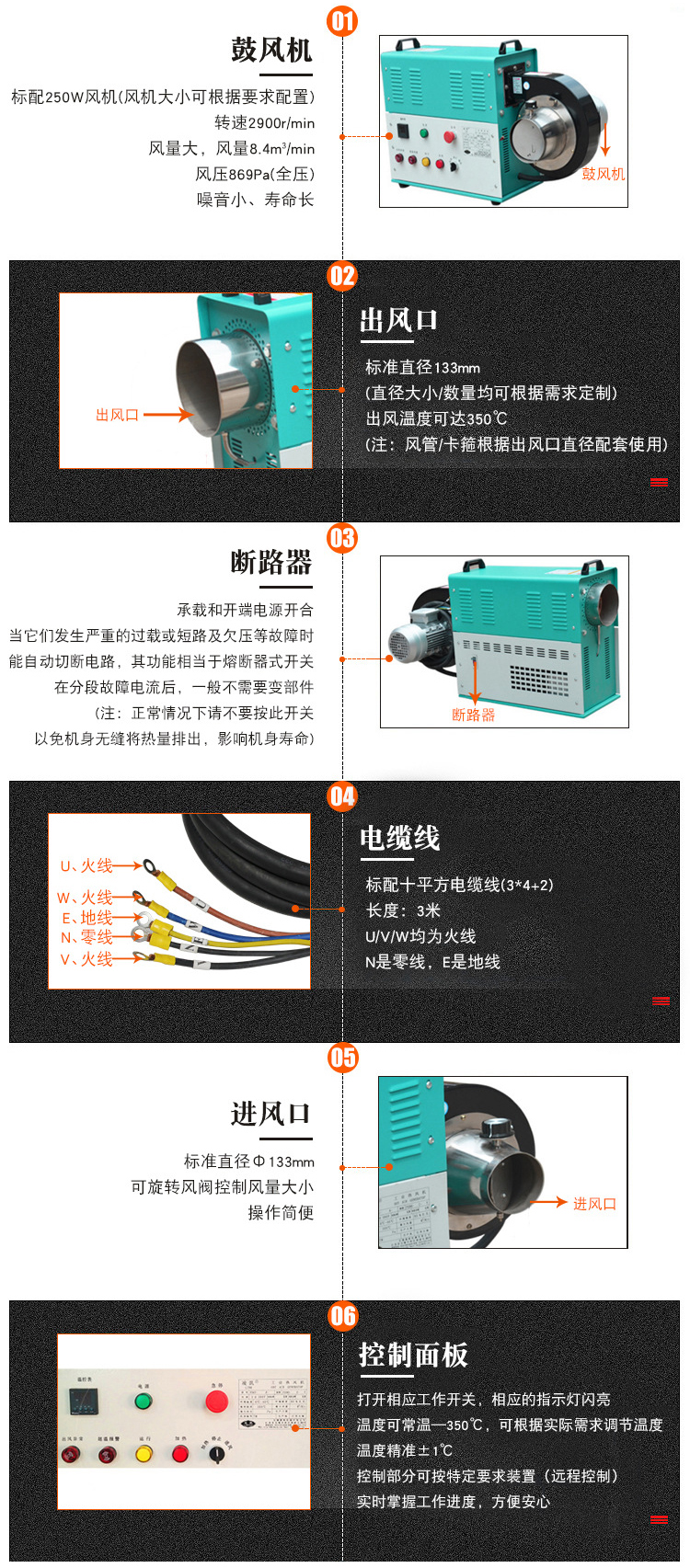 | 產品功能: | 高溫熱風、熱風生發、環保熱源、350℃高溫熱風 |