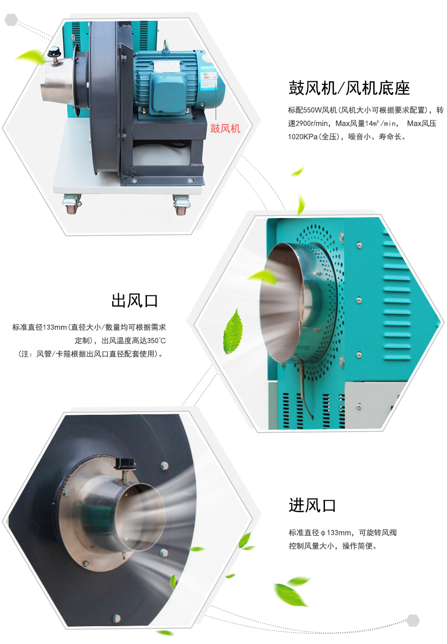 工作效率高 可365天日夜連續(xù)高溫工作,熱風(fēng)機(jī)設(shè)計(jì)安裝多項(xiàng)保護(hù)功能措施,放心使用。 |